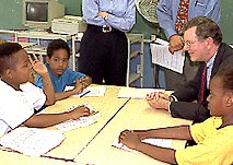 ![]() Forbes listening to schoolchildren. |